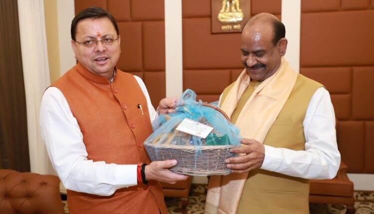 मुख्यमंत्री धामी ने ओम बिड़ला को भेंट किया चारधाम का प्रसाद