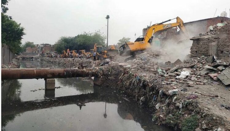 दिल्ली के तैमूर नगर में नाले किनारे अवैध कब्जे ध्वस्त