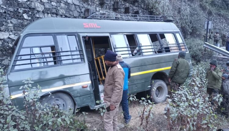 नंदप्रयाग में अनियंत्रित होकर सड़क पर पलटी जवानों से भरी बस