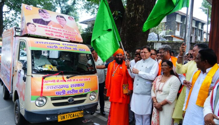 मुख्यमंत्री श्री पुष्कर सिंह धामी ने सोमवार को मुख्यमंत्री कैंप कार्यालय से डॉ० भीमराव अम्बेडकर समाज कल्याण बहुउद्देशीय शिविर रथ को हरी झंडी दिखाकर रवाना किया।