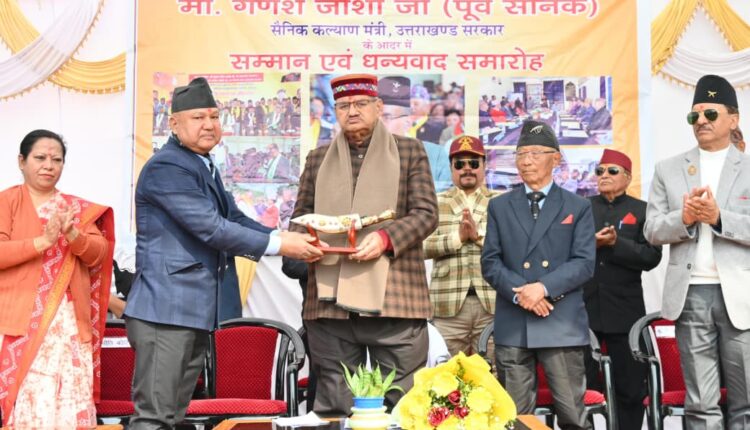 ऑल इंडिया गोरखा एक्ससर्विसेस वैलफेयर एसोसिऐशन द्वारा आयोजित धन्यवाद एवं सम्मान समारोह में प्रतिभाग करते सैनिक कल्याण मंत्री गणेश जोशी