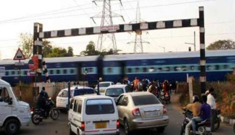 नकरौंदा रेलवे फाटक बना ‘डेथ ट्रैप’, बाल-बाल बचे स्कूली बच्चे और यात्री।