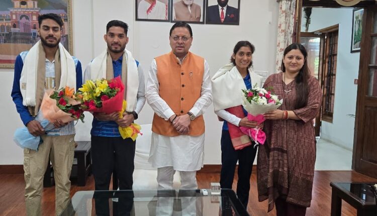 सूरज पंवार ने 42 किमी रेस वॉक मिक्स्ड रिले, परमजीत सिंह ने 20 किमी रेस वॉक एवं अंकिता ध्यानी ने 5000 मीटर में प्रतिभाग किया। मुख्यमंत्री ने तीनों को शुभकामनाएं देते हुए कहा कि वे आगे आने वाली प्रतियोगिताओं में पूरे समर्पण से अपनी खेल प्रतिभा का प्रदर्शन करें। उन्होंने कहा कि राज्य सरकार और प्रदेश की जनता उनके साथ है।