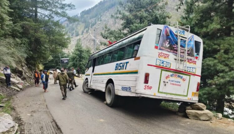 गंगोत्री हाईवे पर हर्षिल के समीप सड़क का पुस्ता टूटने के कारण यात्रियों से भरी बस का एक टायर हवा में लटक गया। अचानक हुई घटना से यात्रियों में भय का माहौल बन गया। सूचना मिलने पर हर्षिल थाना पुलिस मौके पर पहुंची और बस में सवार सभी लोगों को सुरक्षित बाहर निकाला। पुलिस ने क्रेन की मदद से बस को सड़क पर निकालकर यात्रियों को उनके गंतव्य के लिए भेज दिया।