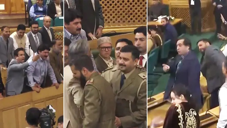 विधानसभा में हाथापाई, खुर्शीद अहमद शेख ने अनुच्छेद 370 पर बैनर दिखाया