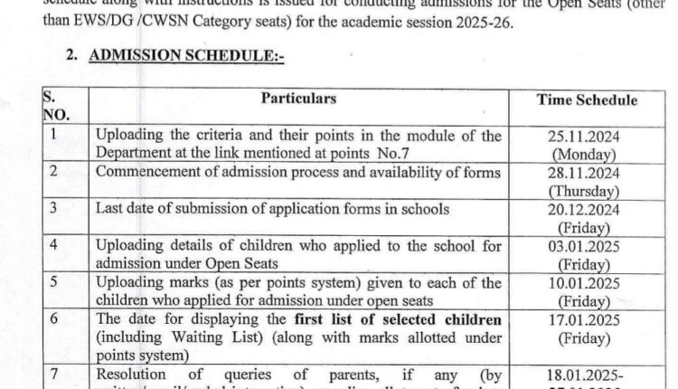 दिल्ली के निजी स्कूलों में नर्सरी दाखिलों के लिए शिक्षा निदेशालय ने जारी किए दिशा निर्देश