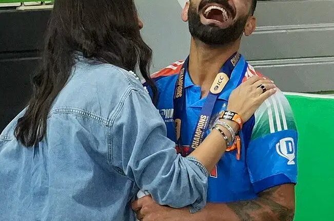 मैच देखने के लिए विराट की पत्नी अनुष्का, रोहित की पत्नी रितिका और बेटी समायरा और जडेजा की पत्नी रिवाबा और बेटी निध्याना भी स्टेडियम में मौजूद थे। टीम इंडिया की जीत के बाद विराट ने अनुष्का को गले लगा लिया। वहीं, रोहित डग आउट के पास रितिका और समायरा के साथ खुशियां मनाते दिखे। वहीं, अनुष्का भी मौजूद थीं। रोहित ने अनुष्का को भी गले लगाया और दोनों के बीच हंसी मजाक हुआ। वहीं, जडेजा बेटी निध्याना को गोदी में उठाकर मैदान में घूमते दिखे। इस दौरान कुलदीप यादव ने निध्याना को दुलार भी किया।