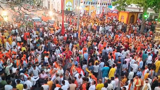 शिवाला से निकली भव्य रामनवमी शोभायात्रा, सांसद और विधायकों ने की आरती